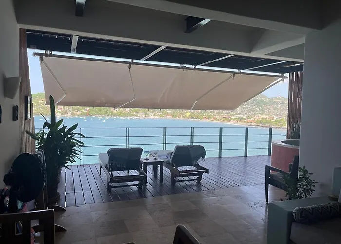 Het strand 84 m^2 El Nido Casa 4 - Paradise On The Bay appartement ligt in Zihuatanejo, op circa 5 minuten naar Playa La Madera, en biedt spa-voorzieningen zoals een buitenzwembad. Dit appartement biedt een uitzicht op de zee en er is een zonneterras.